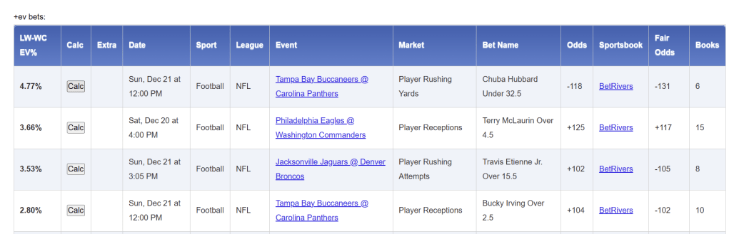 - Only betting the highest EV% (fragile edges, constant line changes)